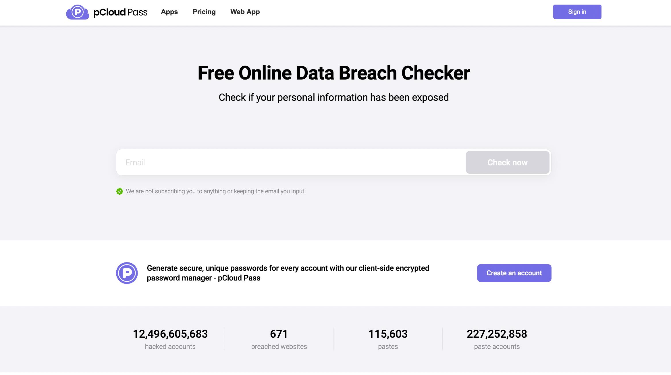 pCloud's Data Breach Checker allows users to find out instantly if their email is part of one or more known data breaches.