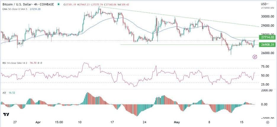The BTC/USD rebounded in the overnight session as hopes of a debt limit deal jumped. Bitcoin jumped to a high of $27,372, much higher than this week's low of 25,763. This price is almost 12% below the highest point in April.US debt limit and Tether purchasesThe BTC/USD pair jumped after Tether announced that it will buy Bitcoin with some of the profits. The company will allocate about 15% of its profits to Bitcoin and gold. Tether also owns gold as part of its basket of assets. Tether makes most of its money by just investing in government bonds, which is seen as the safest place to pack funds. With interest rates rising, the company is making hundreds of millions of dollars every quarter. Bitcoin also rose as its correlation with American stocks continued. In the United States, all the major indices jumped by more than 100 basis points. The tech-heavy Nasdaq100 index jumped by over 140 points while the Dow Jones and S&P 500 indices rose by 400 and 50 points, respectively. At the same time, the US dollar index also jumped by over 20 basis points.The main catalyst for this rally was the rising optimism that the American government will not default. Joe Biden said that he was confident that the US will raise its debt ceiling and reiterated that talks with the house speaker were civil and respectful. Also, he said that he was open to resolving the work requirement issue as part of proposals by Republicans.The BTC/USD pair also jumped even as bank stocks soared. The most vulnerable regional banks like Western Alliance and PacWest jumped by double digits. Recently, Bitcoin has done well when regional bank stocks retreated.BTC/USD technical analysisThe BTC/USD pair drifted upwards but remained sharply lower than the highest point this year. It managed to move above the 25-period moving average and the important resistance point at 26,908, the lowest point on April 24. The Relative Strength Index jumped above the neutral point at 50 while the Awesome Oscillator is oscillating at the neutral point. Therefore, the outlook for BTC is neutral with a bullish bias. A move above the important resistance at 27,714 (May 15 high) will signal that bulls have prevailed, which will see it eye the next psychological level at 29,000. Ready to trade our daily forex signals ? Here's a list of some of the best crypto brokers to check out.
