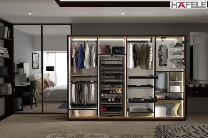 Wardrobe Rail: The Wardrobe Rail is a valuable addition to Häfele's Wardrobe Accessories range and fits in perfectly with wardrobes made with the Klar Door or Plusch Door Profiles. Available in the same two finishes of Brushed Stainless Steel and Black, the wardrobe rail complements the other profiles in this range. It comes with a provision to install LED Strip Lights and diffusers offering ambient/functional lighting inside your wardrobes.