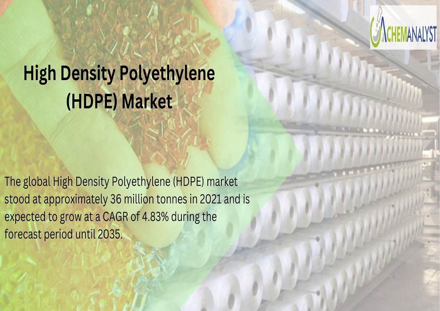(MENAFN- ChemAnalysts) According to ChemAnalyst report, “Global High Density Polyethylene (HDPE) Market Analysis: Plant Capacity, Production, Process, Technology, Operating Efficiency, Demand & Supply, End-Use, Grade, Foreign Trade, Sales Channel, Regional Demand, Company Share, 2015-2035”, At a steady CAGR of 4.83% over the projection period by 2035, the High Density Polyethylene (HDPE) market is anticipated to grow significantly and reach nearly 70 million tonnes. The rising demand from the Packaging, Construction, Consumer Goods, Agriculture, and Other end-use industries, is expected to swell the High Density Polyethylene (HDPE) market in the forecast period.