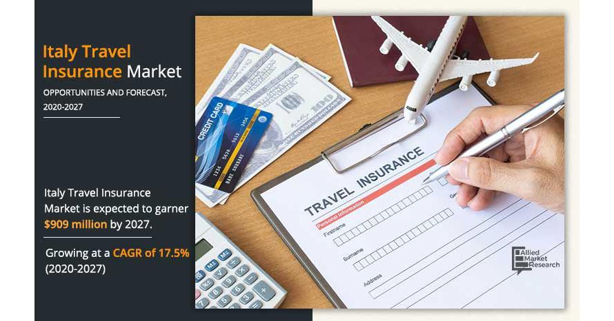 PORTLAND, UNITED STATES, UNITED STATES, June 6, 2023/einpresswire.com / -- According to a recent report published by Allied Market Research, titled, " italy travel insurance market By Insurance Cover, Distribution Channel, Distribution Mode, and End User: Country Opportunity Analysis and Industry Forecast, 2020-2027", the country market was valued at $440 million in 2019, and the italy travel insurance market forecast is projected to reach $909 million by 2027, growing at a CAGR of 17.5% from 2020 to 2027.