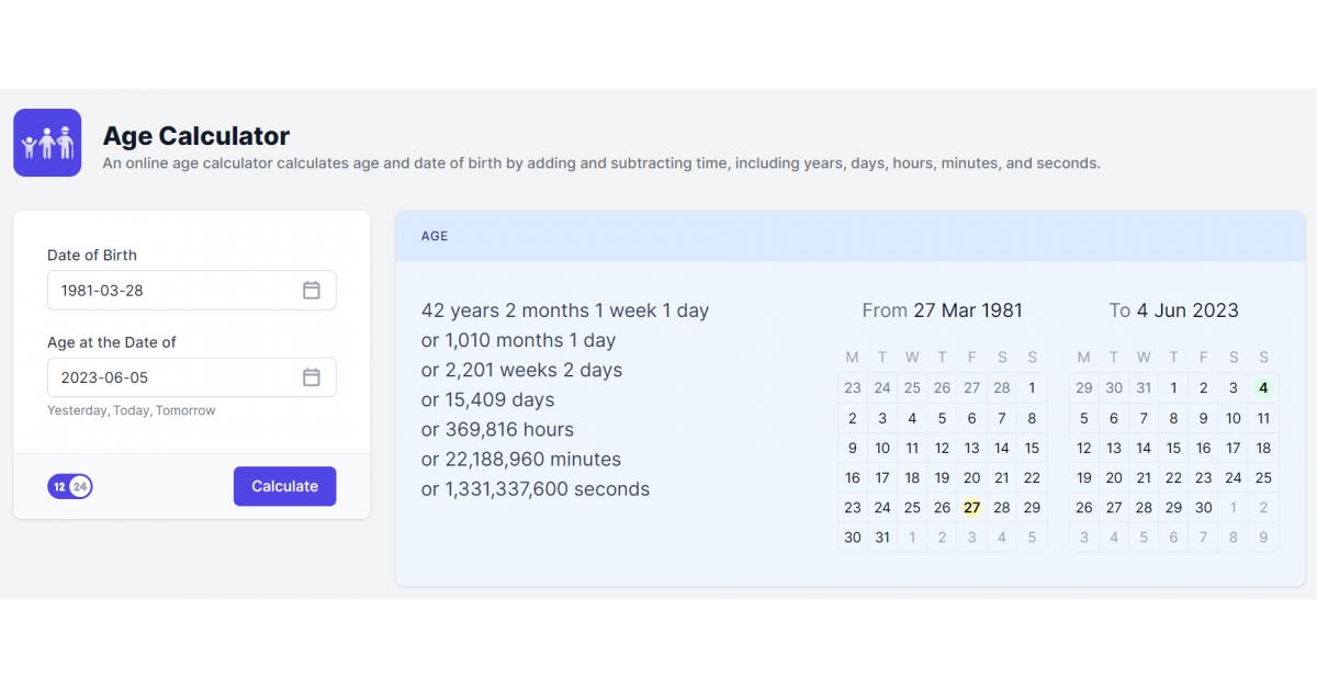 LAS VEGAS, NEVADA, USA, June 12, 2023/einpresswire.com / -- The innovative platform, Calculator.io, announced its newest tool, the age calculator . This solution offers a seamless method to compute the age in years, months, days, hours, minutes and even seconds between two dates.