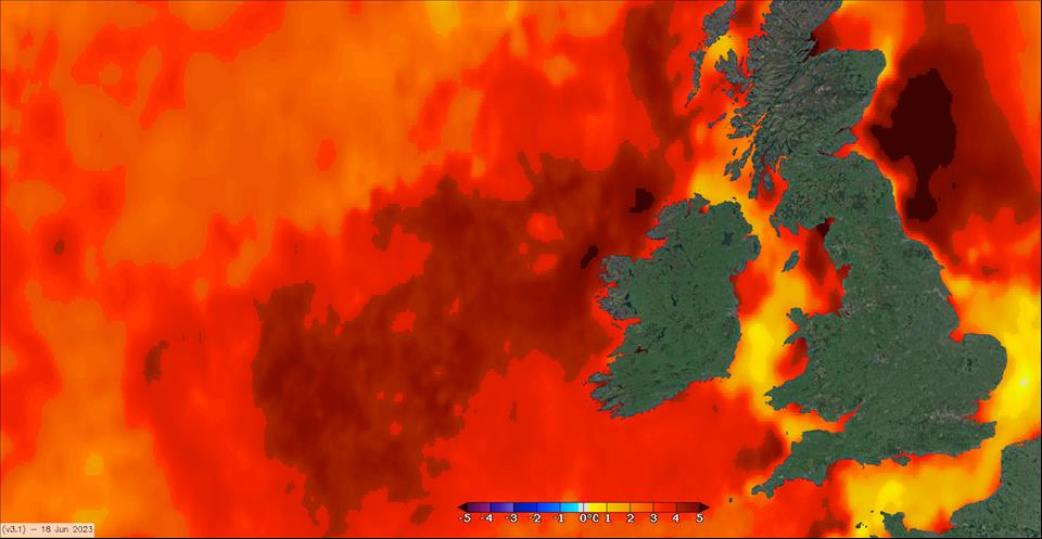 Marine heatwaves are classified as“prolonged periods of anomalously high sea surface temperature”, when compared to the long-term average for that time of year. And thanks to measurements made by satellites orbiting the earth we know that, in some areas around the UK, surface water temperatures are 4°C to 5°C above normal for mid June.