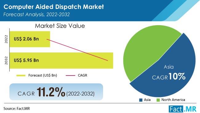 Due to an increase in investments made in infrastructure development and public safety over the course of the forecast period, Asia is expected to show a higher growth rate. The market for computer-aided dispatch was estimated to be worth roughly US$ 1.52 billion in 2021, and it is projected to grow at a respectable CAGR of about 10% through 2032.