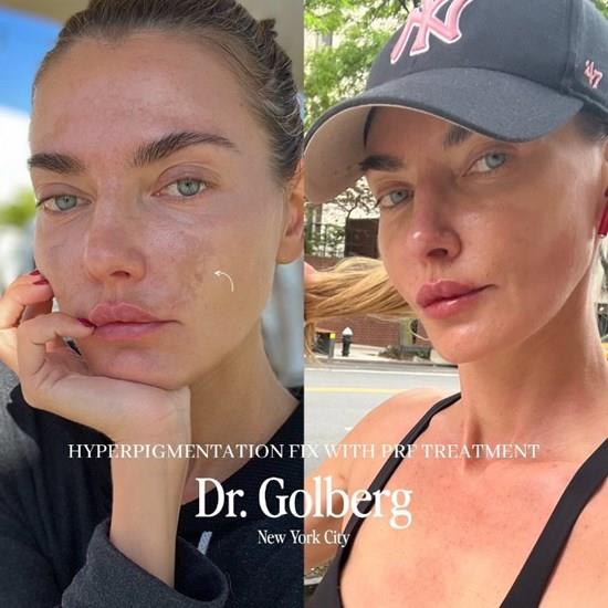 Dr. Golberg's innovative hyperpigmentation treatment combines repair-enriching molecules such as PRF, exosomes, and PDO threads. PRF, derived from the patient's blood, is abundant in growth factors and regenerative properties. This effectively stimulates collagen synthesis, refines skin texture, and reduces pigmentation irregularities. Paired with exosomes this unique blend amplifies tissue regeneration and minimizes hyperpigmentation while the PDO threads provide mechanical reinforcement triggering further collagen production within the skin's deeper layers. Under the expertise of Dr. Alexander Golberg, the Dr. Golberg Wellness Institute is setting a new standard in this field, treating not only hyperpigmentation but also improving skin firmness and texture, revealing natural and youthful results.