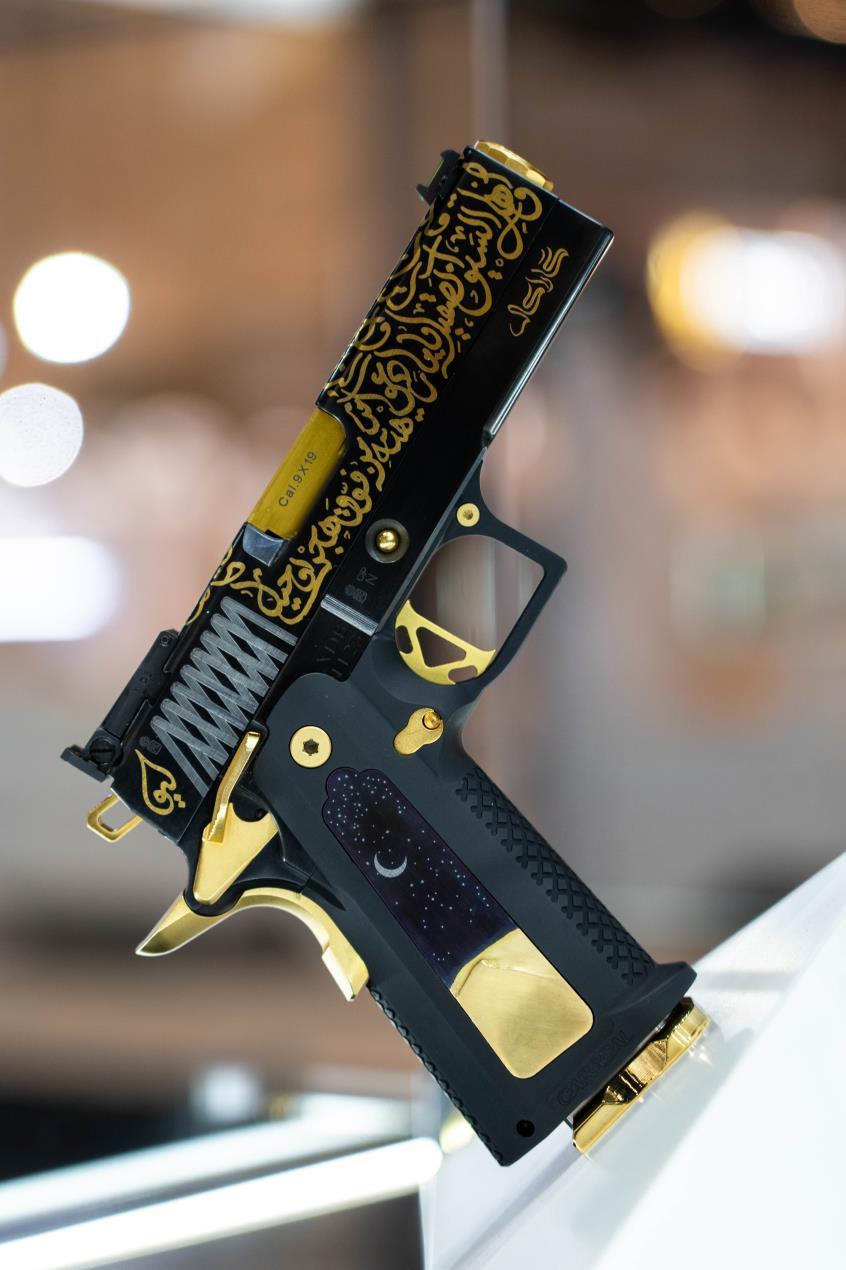 The centrepiece of CARACAL's display are the exclusive Liwa Pistols. Created by CARACAL's Custom Projects Division, the pistols draw inspiration from Liwa's oasis of date palms, waters, and forts, reflecting the Emirate's dedication to preserving environmental wealth and cultural roots. The pistols are one-of-a-kind, compact versions of the acclaimed CARACAL 2011 pistol, engraved with 24-carat gold and embossed using three different techniques.