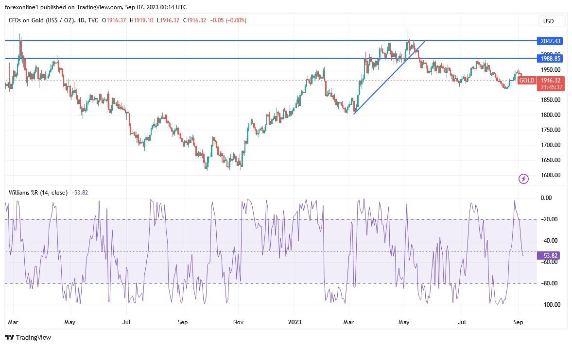 (MENAFN- Daily Forex) The continuation of the gains of the American dollar brought more losses to the gold price XAU/USD reaching the support level of $1915 per ounce. It settled around its losses at the beginning of the trading session today, Thursday.Thedollar is still the strongest in the expectations of the American interest rate coinciding with the good performance of theeconomy despite the tightening of thecentral bank's policy. The statements of the officials of the American Federal Reserve Bank support further tightening of the bank's policy, and besides, there was a demand for the purchase of the American dollar as a safe haven in light of the concern of a global economic recession led by China. Forex Brokers We Recommend in Your Region 1