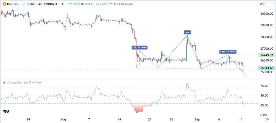 The BTC/USD pair made a strong bearish breakout as demand for cryptocurrencies retreated. Bitcoin dropped to the important support level of $25,000, the lowest level in months.Money supply concernsBitcoin price has been under pressure in the past few months as investors battle several market risks. First, there are regulatory risks in the market as the Securities and Exchange Commission (SEC) case against Coinbase and Binance continues. While these cases will take long to conclude, I believe that they will have significant implications for cryptocurrencies.Second, there are concerns about the falling money supply in theand Europe. The most recent data by the Fed shows that the M2 money supply dropped to $20.9 trillion from a peak of over $21.5 trillion. The M2 figure tracks the amount of money available to consumers in form of cash, personal savings, and money market funds.The money supply has been falling as the Federal Reserve hikes interest rates and continues with its quantitative tightening (QT) policy. The same trend is happening in the European Union, where the bank has been hiking rates for a while.The state of the money supply in thecould worsen as people with student loans start paying back their debt in 2020. Therefore, there is a likelihood that risky assets like Bitcoin could see more downside in the coming months.Further, Bitcoin is struggling as investors move to other higher-yielding assets as interest rates rise. Money market fund yields have risen to more than 5%.The next important economic data that could move the BTC/USD pair will be the upcominginflation data scheduled on Wednesday. Economists expect the data to show that inflation remains stubbornly higher than the Fed's target of 2.0%.BTC/USD technical analysisThe BTC/USD pair has been in a tight range recently. It made a bearish breakout below the key support at 25,343, the lowest level on September 1 and 6 and in August, The pair moved below the 50-period moving average. Most importantly, it has formed a head and shoulders pattern whose neckline is at 25,343.The view is that Bitcoin price will likely have a bearish breakout as sellers target the next key support at 24,000. The stop-loss of this trade will be at 26,000.Ready to trade our free daily Forex trading signals ? We've shortlisted the best MT4 crypto brokers in the industry for you.