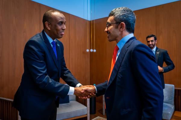 NEW YORK, 22nd September, 2023 (WAM) -- H.H. Sheikh Abdullah bin Zayed Al Nahyan, Minister of Foreign Affairs, has met with Hamza Abdi Barre, Prime Minister of the Federal Republic of Somalia, in New York,