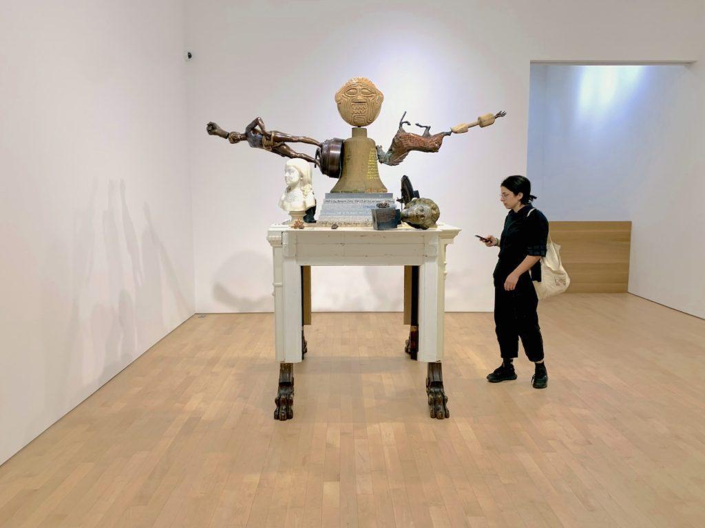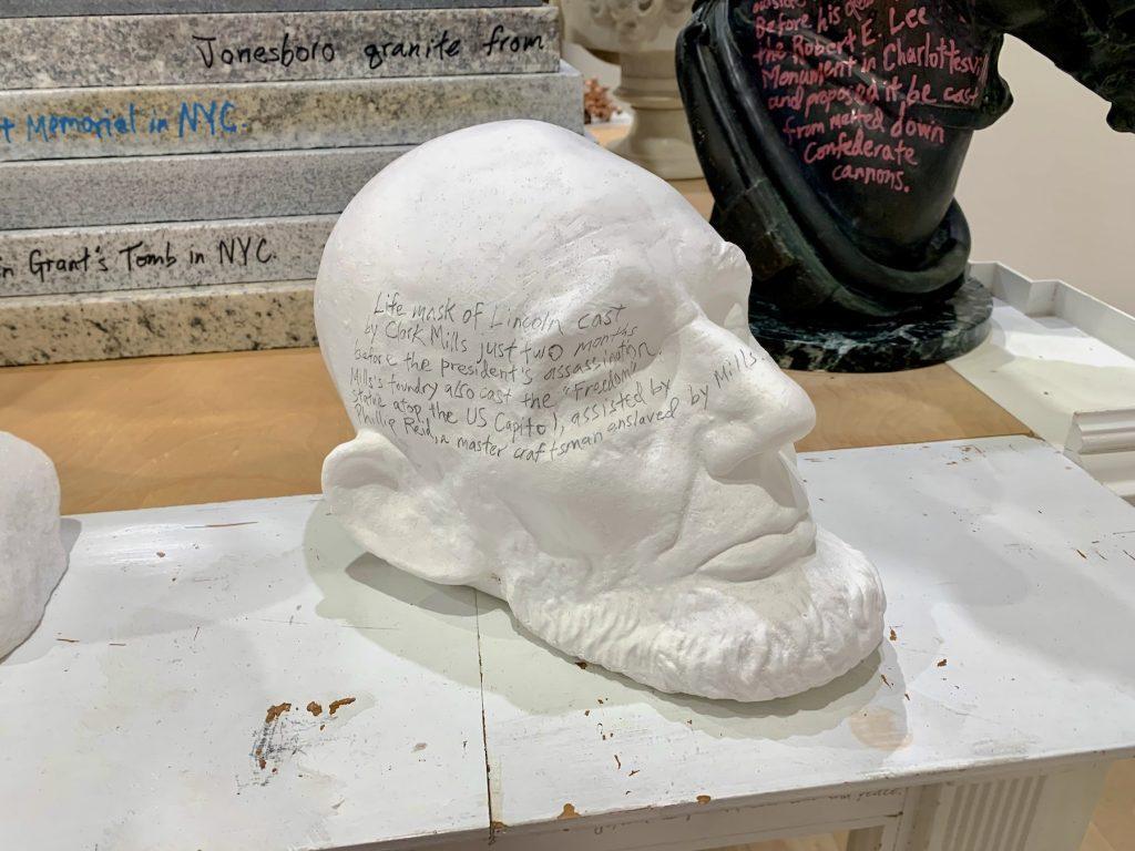 A Monument to the“Monument Conversation” At Jane Lombard , Michael Rakowitz's Frankenstein's Monster of a sculpture, , is a gawky anthropomorphic assemblage formed of fragments of other sculptures, models, maquettes, and artifacts all related to public artworks. On each element, Rakowitz has scrawled some graffiti, noting facts about the various public artworks, their materials' origins, and the debates they are caught up in . As a whole, it's a memorial of the heated debates over what and who gets celebrated in public, kicked off by the big protests of 2020.