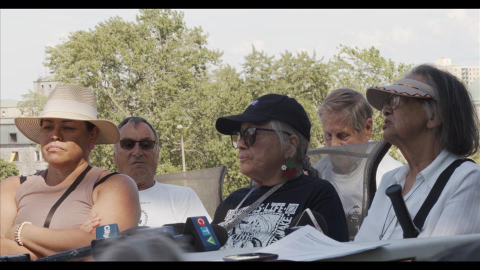 Mohawk Mothers arrive at the Superior Court in Montréal on Sept. 14, 2023. THE CANADIAN PRESS/Ryan Remiorz