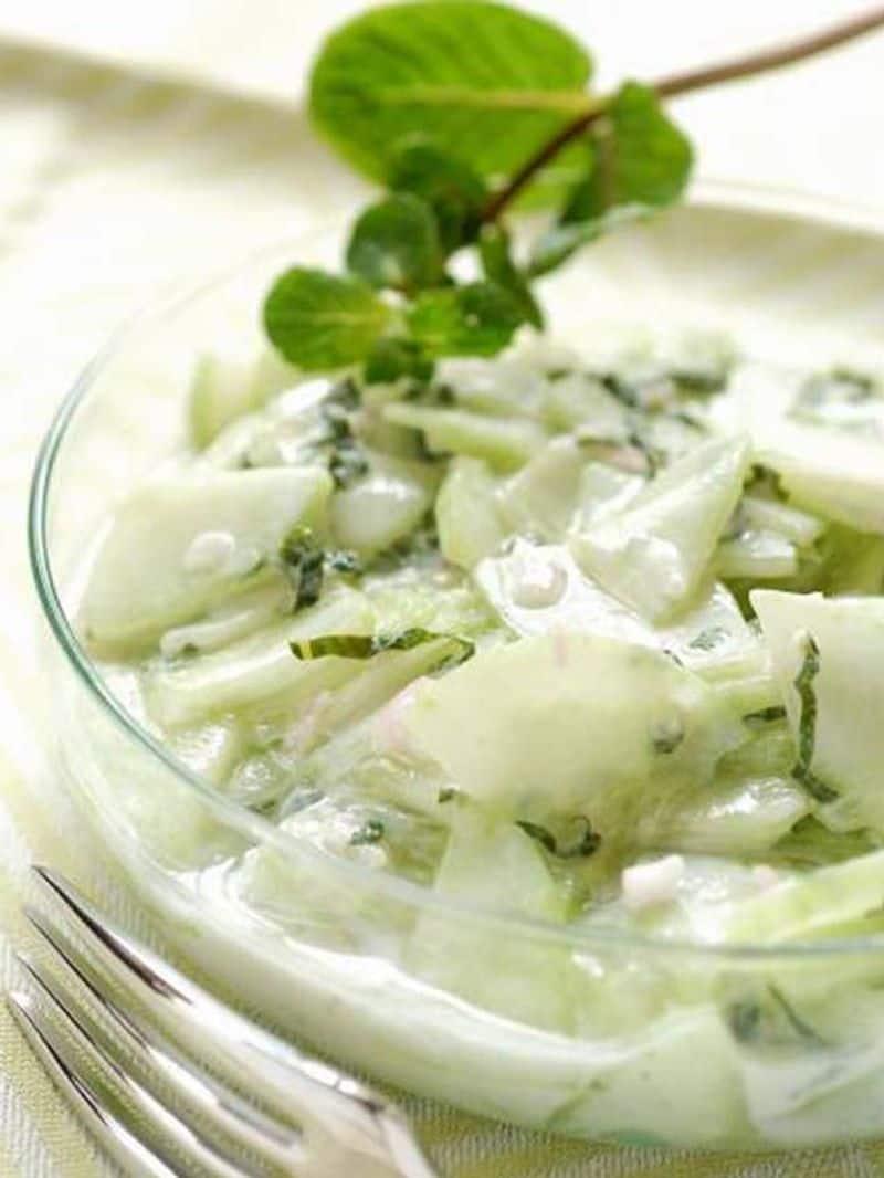 Made by mixing grated cucumber to the yogurt and sprinkling spices like cumin powder, pepper, mint powder and salt, this raita is a favourite of many.