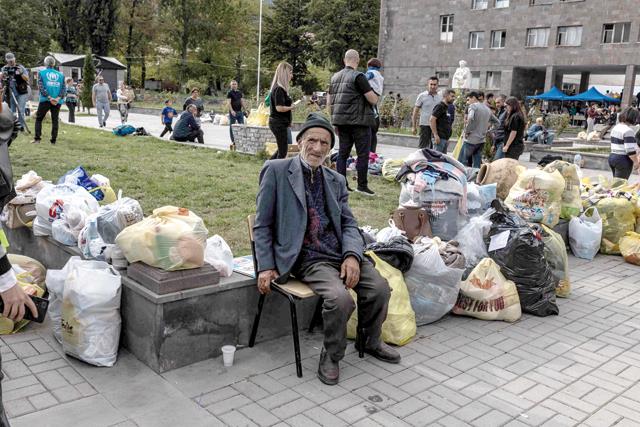 In the nearest town of Goris, hundreds of exhausted refugees waited amongst their baggage in the central square for the government to offer accommodation.
