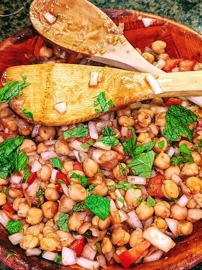 A protein-rich chaat made from chickpeas (chana) mixed with onions, tomatoes, cucumbers, and spices. It's both nutritious and flavorful.