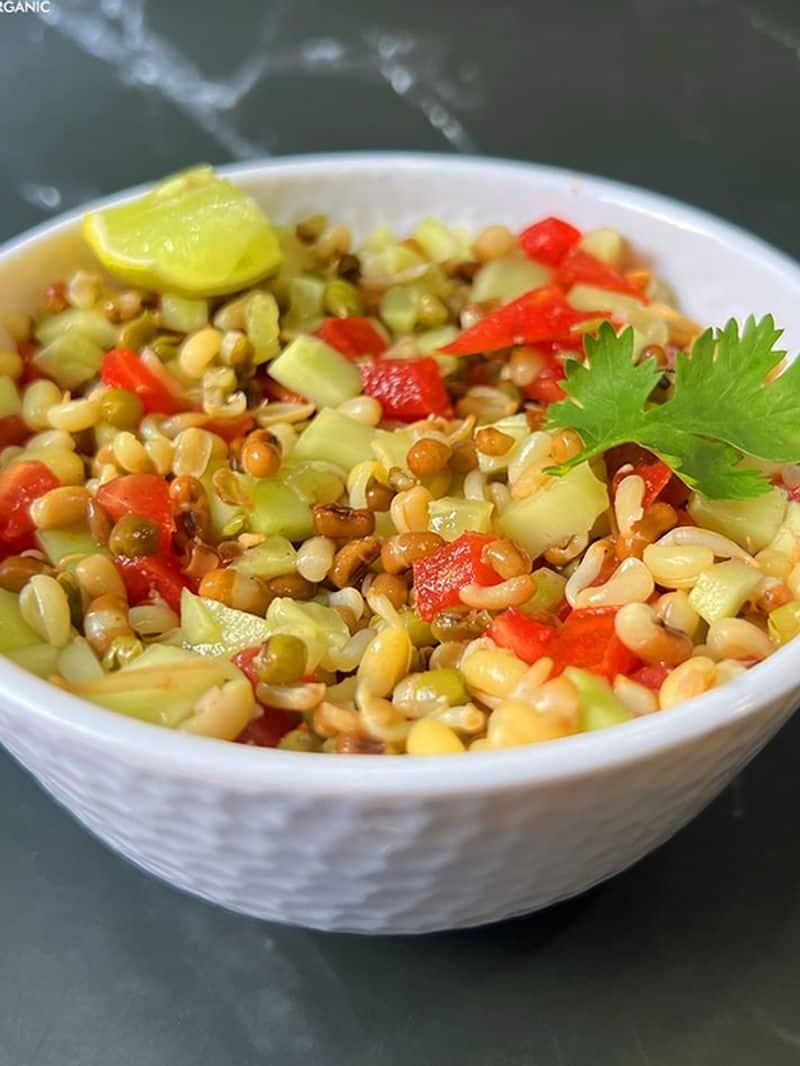 A healthy option made from mixed sprouts, chopped veggies, and a blend of spices. It's packed with vitamins and protein.