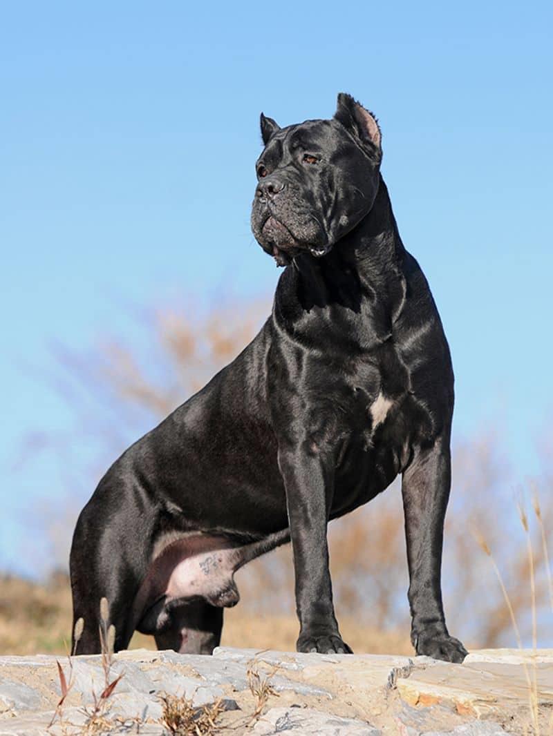 The Cane Corso is a large and athletic Italian breed. They have a strong bite force and were historically used as working dogs for guarding and hunting.