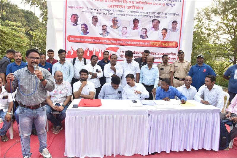 To address this matter, on October 16, 2023, the 725 contractual electric supply workers from BEST\'s Electric Supply Department took to Azad Maidan in a hunger strike. In a decisive move to resolve their grievances and terminate the hunger strike, a pivotal meeting was convened between the Shramik Utkarsh Sabha, a prominent union associated with the Electric Union, and the workers. On this very first day of fasting, Member of Legislative Council, Prasad Lad addressed the workers\' concerns, putting an end to their hunger strike.