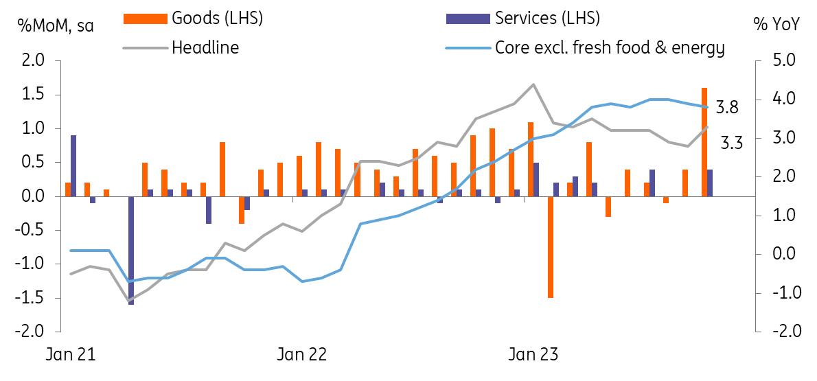 Tokyo inflation climbed up to 3.3% YoY in October (vs 2.8% in September, market consensus). Upside surprises came from: