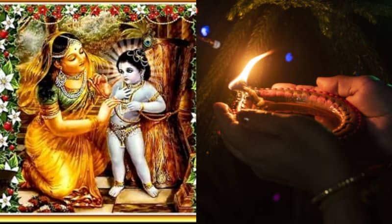 1. Offer a ghee lamp to Lord Damodar (the picture in which Mother Yashoda binds Lord Krishna) every morning and evening and sing Damodarashtakam.