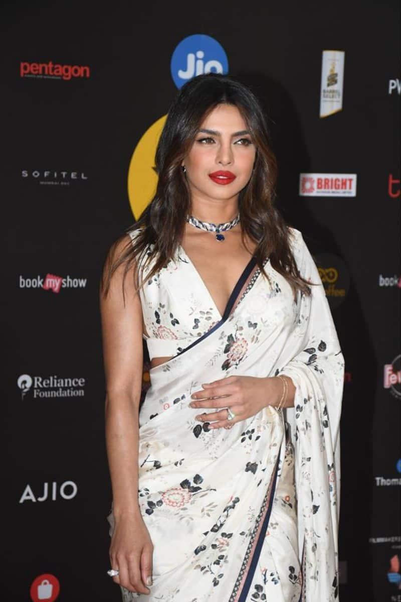 Priyanka Chopra, who is presently in Mumbai for the Jio MAMI Film Festival, surprised everyone once again with her saree outfit.