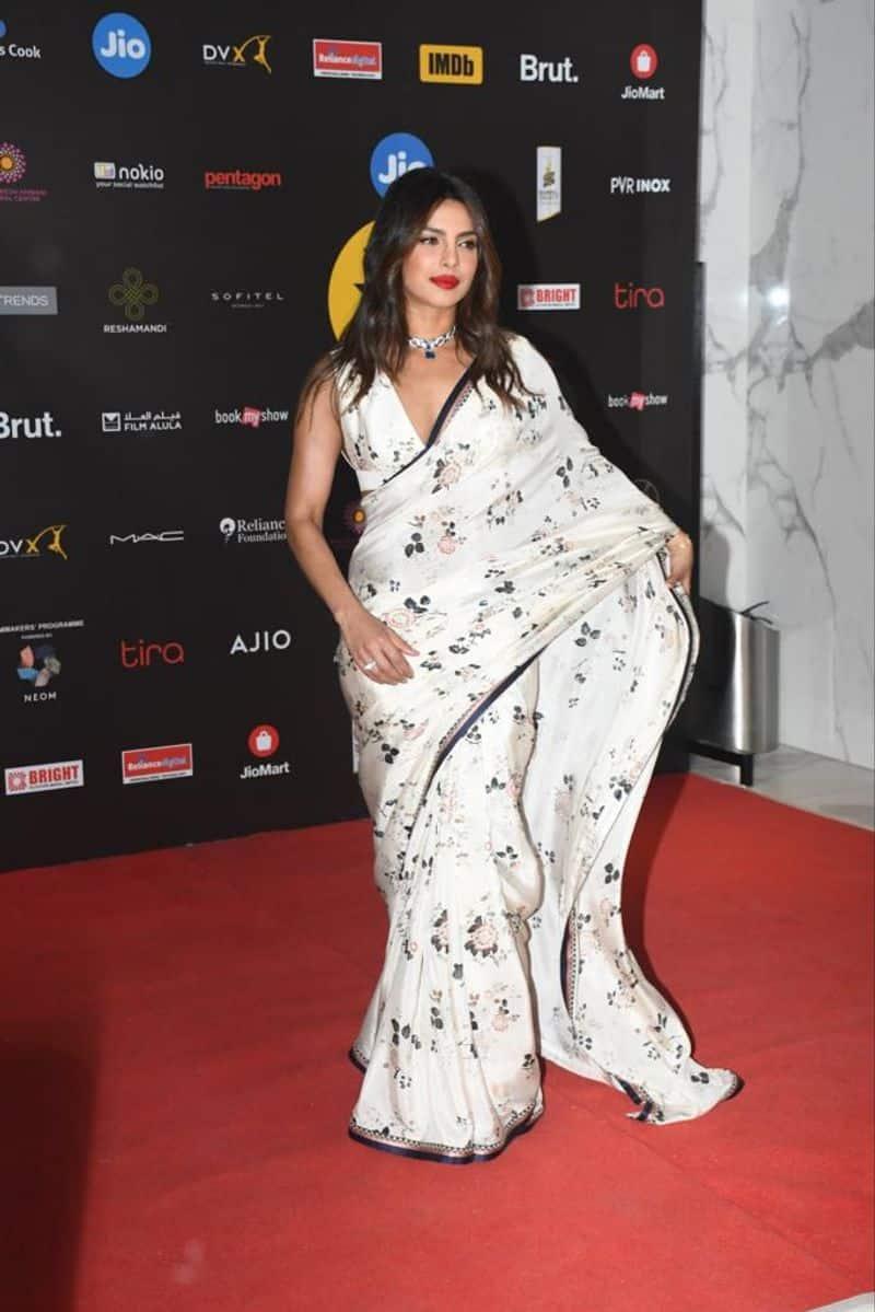 (Photos) Priyanka Chopra Looks Stunning In White Floral Saree At MAMI Film Festival