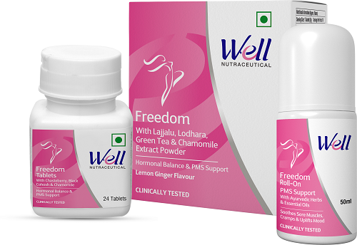 Well Freedom Powder is designed with potent ingredients that help promote hormonal balance, ease menstrual stress, refresh, rejuvenate, and uplift mood. Chamomile, Fenugreek & Green Tea blend support mood elevation and helps cope up with menstrual stress. While Lajjalu, Lodhra & Green Tea aid hormonal balance, help ease muscle cramps and regulate healthy cycle. Presence of Ginger Powder helps manage bloating discomfort during menstruation. Priced at MRP Rs. 499/- (10 sachets of 5 gm each), Well Freedom Powder is free from hormones, has no known side effects, and is easy to consume. Simply mix 1 sachet of 5g tea in 90ml of hot water, drink twice a day, and consume the whole sachet at once.