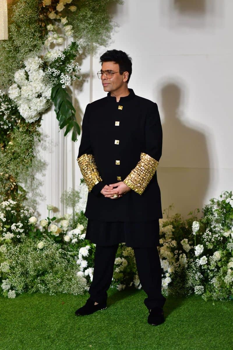 Filmmaker Karan Johar looked stylish in a black outfit at fashion designer Manish Malhotra's Diwali bash on Sunday, 05 November.