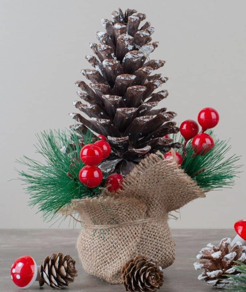 Pinecones, dried oranges, and cinnamon sticks can be used for a rustic, nature-themed christmas tree look.