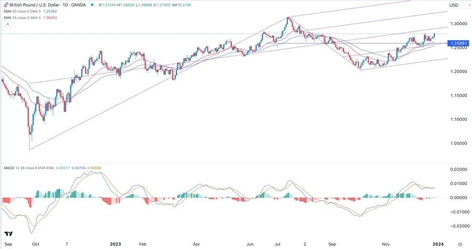 - Buy the GBP/USD pair and set a take-profit at 1.2850. Add a stop-loss at 1.2700. Timeline: 1-2 days.