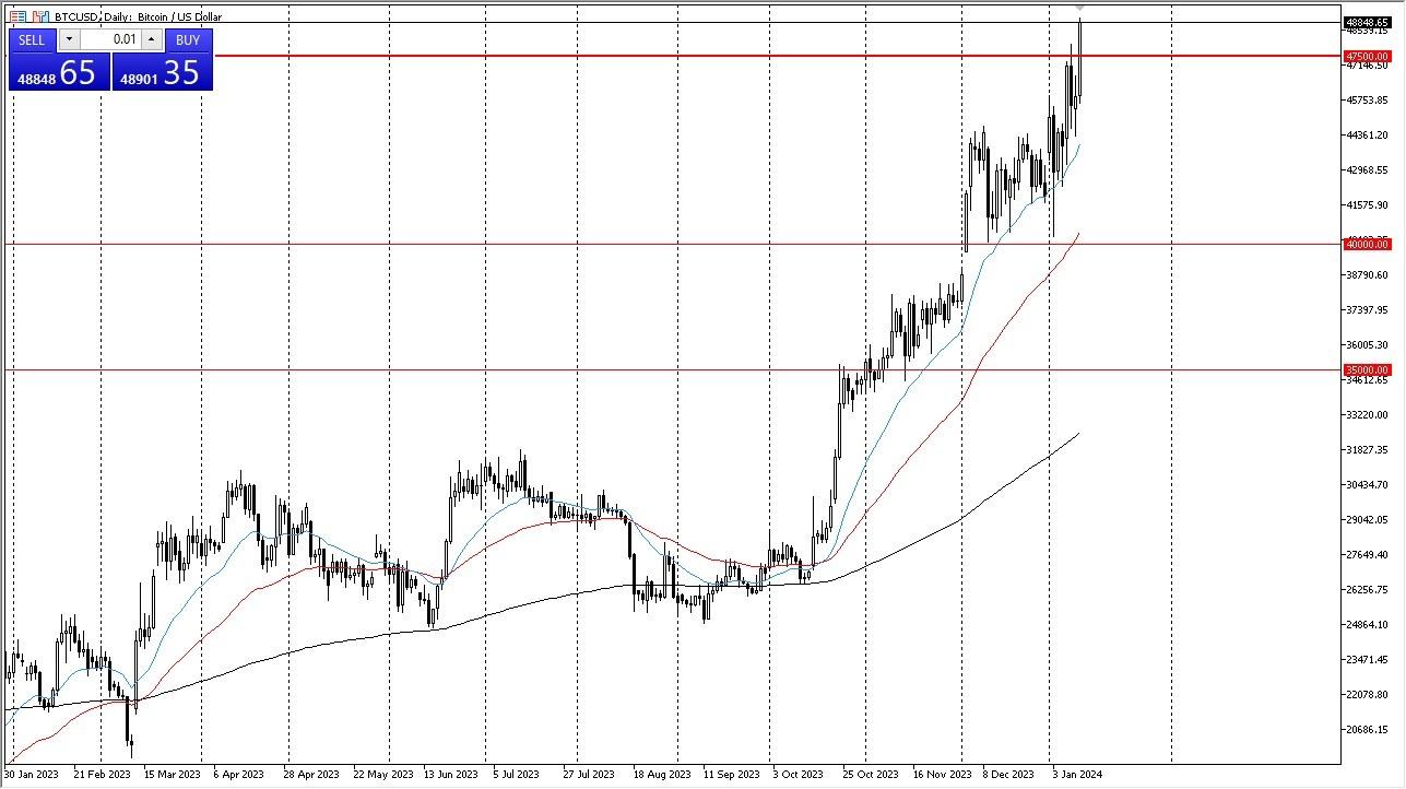 If Bitcoin drops below the $40,000 level, the next substantial support level to watch is $35,000. A move below this point would signal a shift in the trend, but currently, such a scenario appears unlikely. Consequently, value-seeking investors and long-term believers in Bitcoin will probably continue to support cryptocurrency.At the end of the day, Bitcoin is under upward pressure, with the potential for a breakout above the $47,500 level. While short-term pullbacks may occur, the overall market sentiment remains bullish, fueled in part by the anticipation of a Bitcoin ETF. Investors should exercise caution but recognize the prevailing bullish trend in Bitcoin, with $52,000 serving as a significant target in the event of a breakout.Ready to trade Bitcoin in USD ? We've shortlisted the best MT4 crypto brokers in the industry for you.