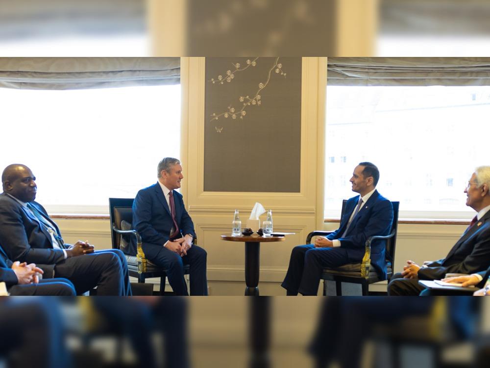 Munich: Prime Minister and Minister of Foreign Affairs HE Sheikh Mohammed bin Abdulrahman bin Jassim Al Thani met today with Leader of the United Kingdom Labor Party HE Keir Starmer, on the sidelines of the Munich Security Conference.
