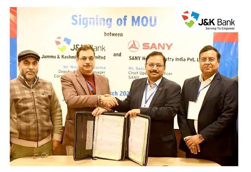(MENAFN- Kashmir Observer) Srinagar- With a view to provide concessions to the prospective borrowers besides convenience, Jammu and Kashmir Bank Tuesday entered into an agreement with SANY Heavy India Pvt. Ltd. (SANY Bharat) and become one of the preferred financiers for the purchase of earthmoving and construction equipment manufactured and marketed by the company.