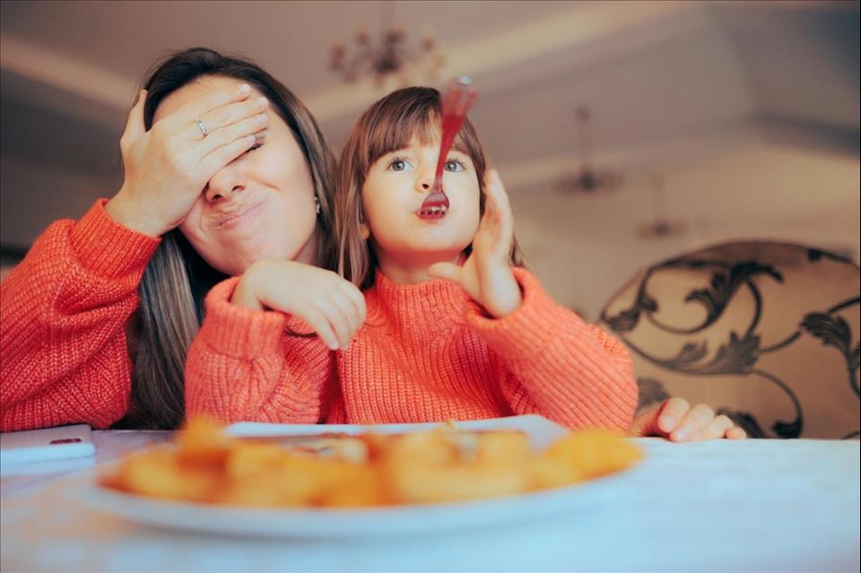 More banana can end up in a child's hair than in the mouth. And that can cause stress. Joaquin Corbalan P/Shutterstock