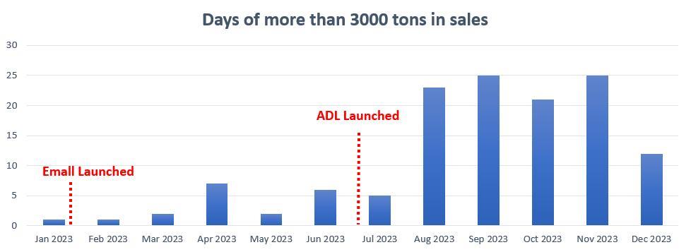 After the successful switch to the new ERP system at the Zambia plant, Huaxin's digital team promptly launched the eMall (an online ordering system) and ADL (an automatic order processing and dispatch system) projects. The integration of ERP, eMall, and ADL effectively ensure the one-to-one matching of orders and vehicles, and safeguard against fraudulent activities. These advanced digital systems serve as the link between the company and its customers, facilitating seamless communication regarding orders, pricing, logistics, and billing.