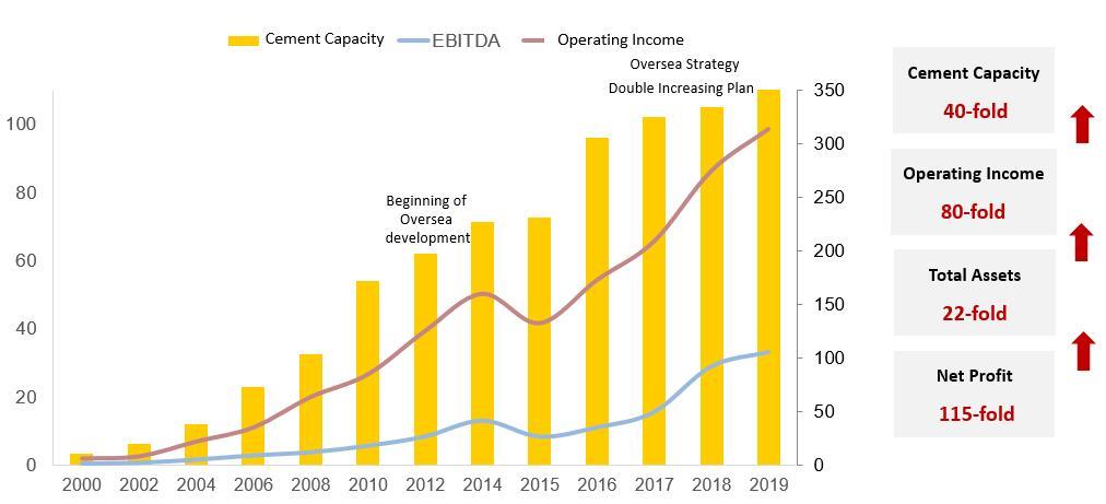 Figure 2: Huaxin Cement's astonishing development in the past 20 years