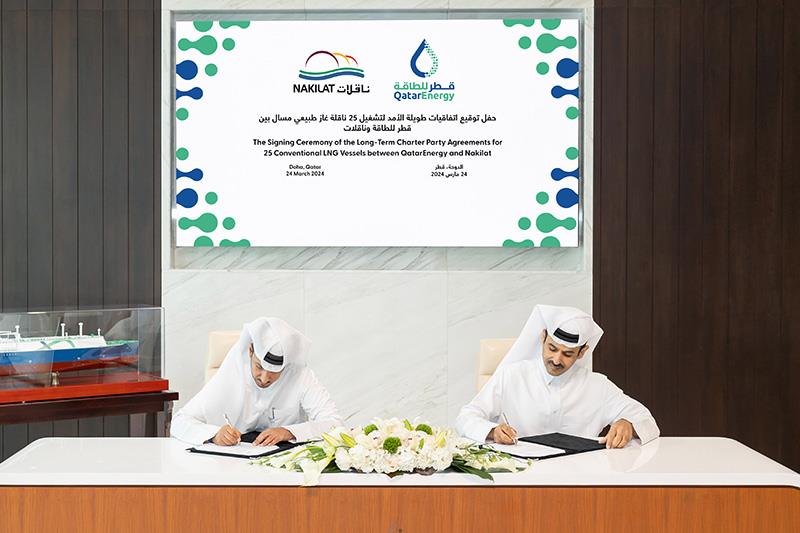 DOHA, Qatar: QatarEnergy signed time-charter party (TCP) agreements with Qatar Gas Transport Company Limited (Nakilat) for the operation of 25 conventional-size LNG vessels as part of the second ship-owner tender under QatarEnergy's historic LNG Fleet Expansion Program.