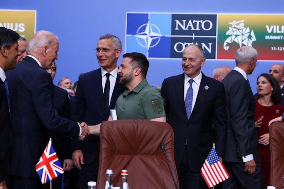 Ukrainian President Volodymyr Zelensky shakes hands with US President Joe Biden at the Vilnius NATO summit. Image: Twitter