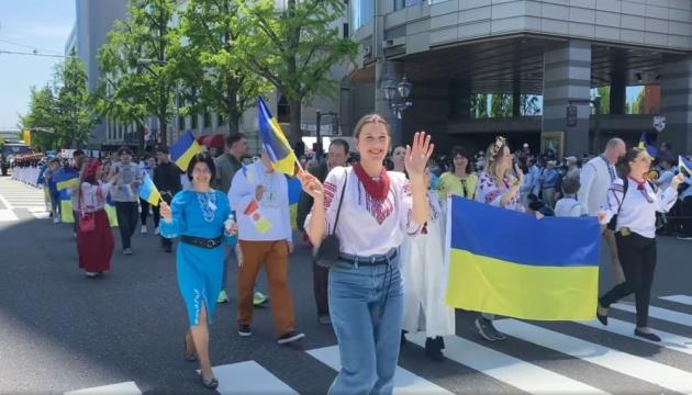 "Diplomats of the embassy, the Ukrainian community in Japan, and evacuated Ukrainians welcomed tens of thousands of spectators, marching in a friendly column in embroidered shirts under Ukrainian flags as a sign of gratitude to Japan for supporting Ukraine," the post reads.