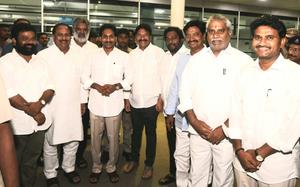 He was seen off at the Gannavaram airport by Ministers Jogi Ramesh and Kottu Satyanarayana, MP Nandigama Suresh, Government Whips Ch. Bhaskar Reddy, S. Udayabhanu, MLCs T. Raghuram, M. Arun Kumar and MLA M. Vishnu.