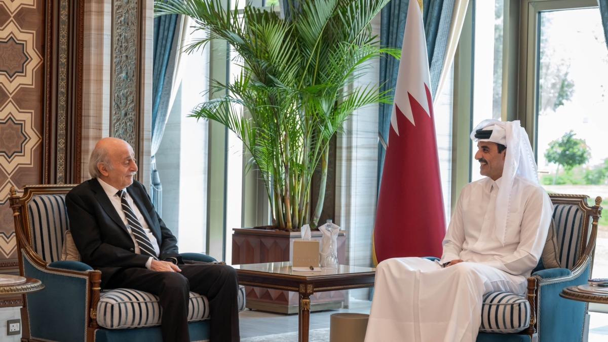 Doha, Qatar: The Amir His Highness Sheikh Tamim bin Hamad Al Thani received, in his office at Lusail Palace on Thursday, May 23, 2024, His Excellency Walid Jumblatt, Former President of the Progressive Socialist Party of Lebanon, and the accompanying delegation, on the occasion of his visit to the country.
