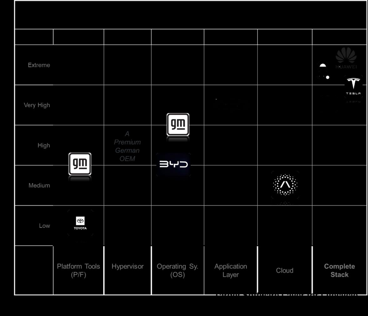 Figure 4: Frost & Sullivan Mobility Benchmarking of selected OEMs on their key focus layers of 'control software stack'