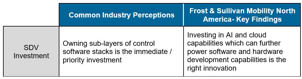 Frost & Sullivan strongly believes that OEMs should not just invest in the industry-perceived SDV but should focus on developing in-house capable AI-defined vehicles. This approach will prevent the need for a U-turn in the next 5-10 years towards becoming AI companies.