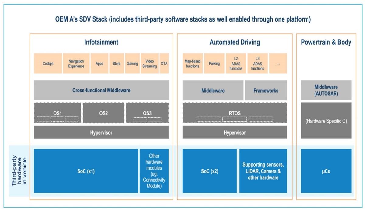 Unlike traditional vehicles that rely on numerous hardware components and software stacks, software-defined vehicles (SDVs) centralize control through advanced computing hardware and a unified software platform. This centralization enables greater agility, scalability, and the seamless introduction of new features and updates. Achieving this requires innovation and investment to decouple software from hardware throughout the vehicle's lifecycle, along with a realignment towards a software-centric approach at the OEM level.
