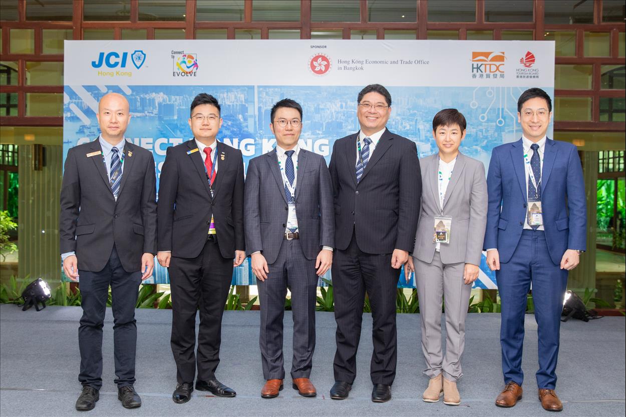Left - JCI Audit Committee Chairperson and 2015 National President Anthony Leung, JCI Hong Kong National President Ben Mak, Director of Economic & Trade Office Bangkok Mr. Parson Lam, JCI Advisory Board Chairperson, HKJC Foundation Chairman and 2008 National President Eric Tang, Deputy Director of Economic & Trade Office Bangkok Ms. Teresa Poon, Deputy Director of Economic & Trade Office Bangkok Mr. Jason Chow.