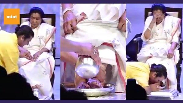 Also Read | 10 Bollywood road trip songs to keep you grooving on your journeySonu Nigam took her time and religiously washed Asha Bhonsle's feet while the latter seemed embarrassed. She smiled and covered her face. Sonu Nigam kissed Bhosle's feet before washing them. He washed the feet, dried them with a towel and prostrates (saashtaang pranaam).