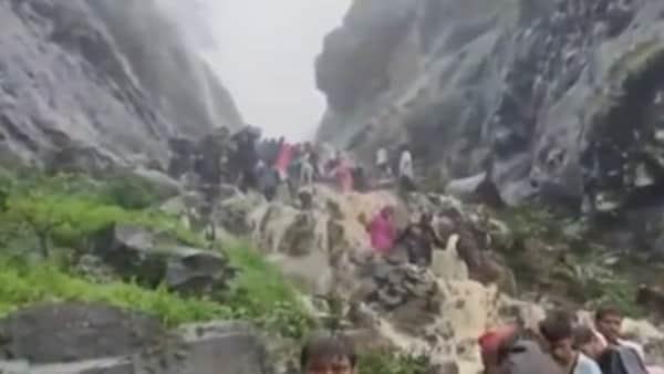 Visuals from the Anjaneri Fort showed people walking down the long trek, making a 'human chain' to safety.