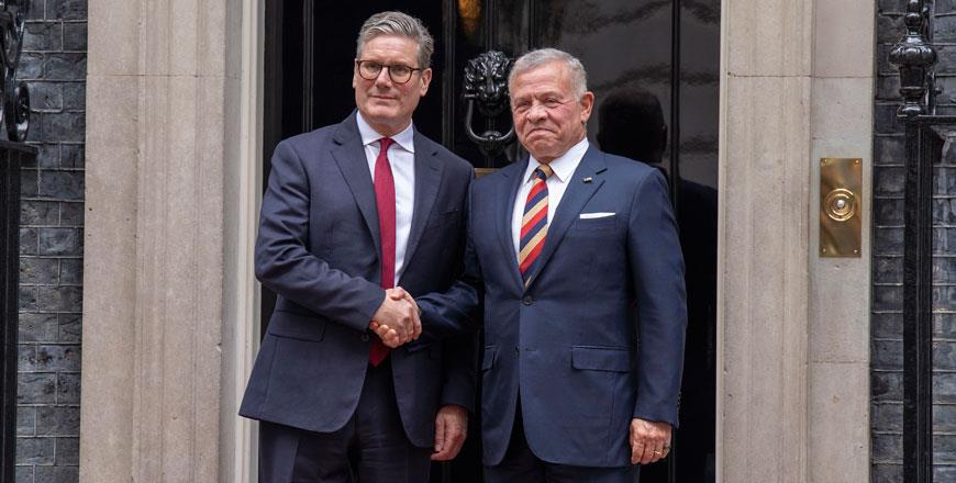 His Majesty commended the UK's support for the two-state solution, expressing appreciation also for its continuous support to Jordan, especially in development and defence, and reiterating keenness on bolstering cooperation and coordination.