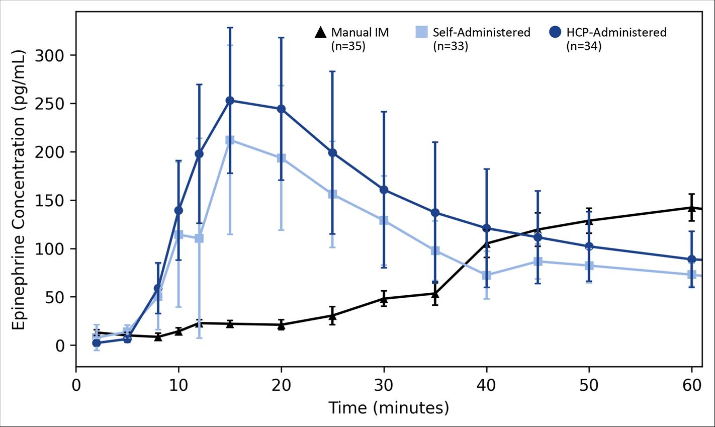 Anaphylaxis is a serious systemic hypersensitivity reaction that is rapid in onset and potentially fatal. As many as 49 million people in the United States are at chronic risk for anaphylaxis. Lifetime prevalence is at least 5%, or more than 16 million people in the United States. Direct costs of anaphylaxis have been estimated at $1.2 billion per year, with direct expenditures of $294 million for epinephrine, and indirect costs of $609 million. The frequency of hospital admissions for anaphylaxis has increased 500–700% in the last 10–15 years. Of patients who previously experienced anaphylaxis, 52% had never received an epinephrine auto-injector prescription, and 60% did not have an auto-injector currently available. The most common causes of anaphylaxis are foods (such as peanuts), venom from insect stings, and medications. Epinephrine injection is the current standard of treatment intended to reverse the severe manifestation of anaphylaxis, which may include skin rash, throat swelling, respiratory difficulty, gastrointestinal distress, and loss of consciousness.