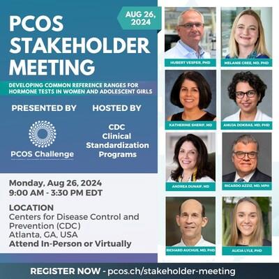 The PCOS Stakeholder Meeting will be held on Monday, August 26, 2024, from 9:00 AM to 3:30 PM EDT at the Centers for Disease Control and Prevention (CDC) in Atlanta, Georgia. It will be a hybrid event, allowing participants to attend in person or virtually.