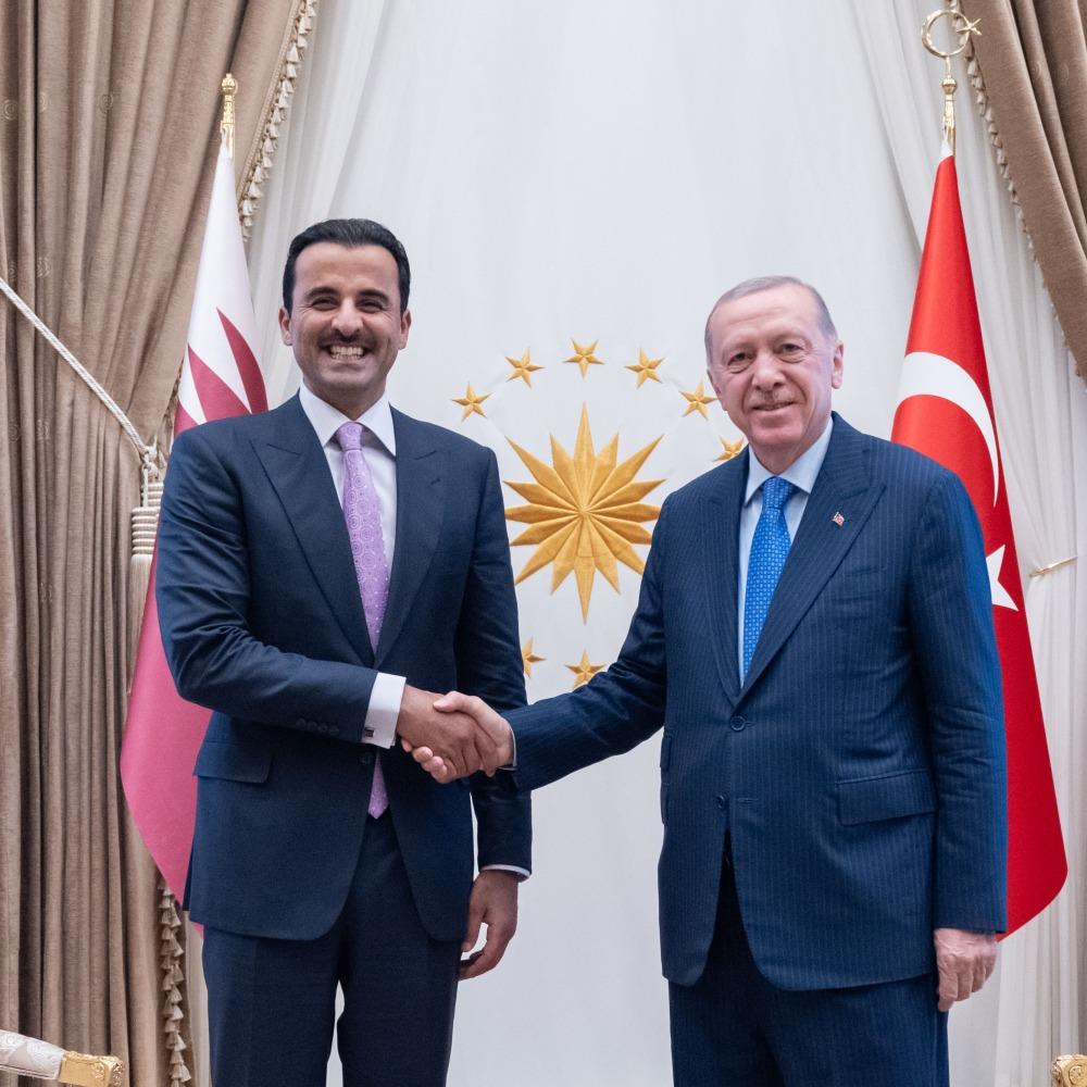Doha, Qatar: The Amir HH Sheikh Tamim bin Hamad Al Thani, and his brother, the President of the Republic of Turkiye, HE Recep Tayyip Erdogan, held a bilateral meeting today at the Presidential Complex in the capital, Ankara.